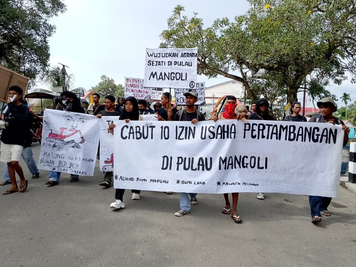 Selain itu, massa aksi juga meminta Bupati Kepulauan Sula dan DPRD harus mengambil sikap menolak izin tambang sekaligus mengesahkan peraturan daerah (Perda) tanah adat di Pulau Mangoli.