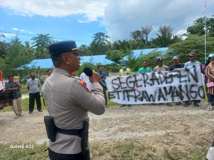 Puluhan warga yang menamakan diri Forum Masyarakat Desa Rawa Mangoli, Kecamatan Mangoli Utara, Kabupaten Kepulauan Sula, Maluku Utara menggelar aksi di depan Kantor Kecamatan Mangoli Utara, Rabu (10/09/2025).