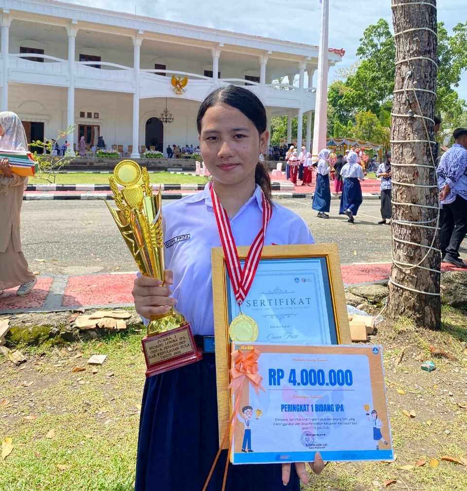 Prestasi membanggakan diraih Sekolah Menengah Pertama (SMP) Negeri 1 Sanana. Quinn Friza, salah satu siswi kelas IX ini berhasil meraih juara pertama Olimpiade Sains Nasional (OSN) bidang IPA tingkat Kabupaten Kepulauan Sula, Maluku Utara jenjang SMP tahun 2025.