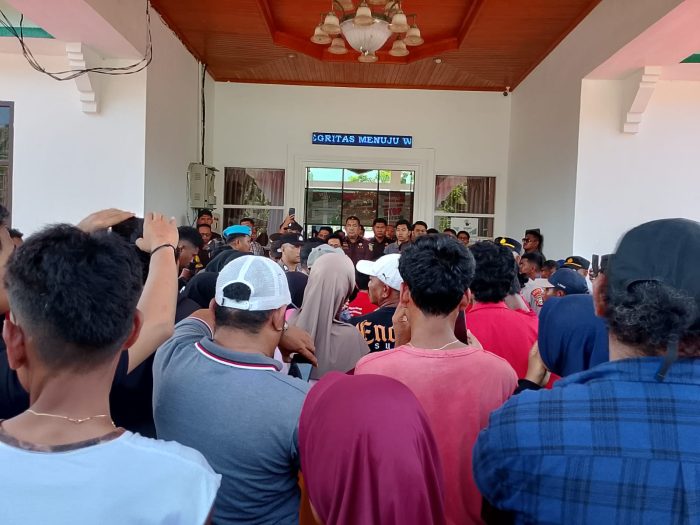 Warga Desa Umaloya bersama sejumlah organisasi kemahasiswaan seperti GMNI, GPM, serta IMM menggeruduk Kantor Kejaksaan Negeri (Kejari) Kepulauan Sula, Maluku Utara, Rabu (19/11/2025).
