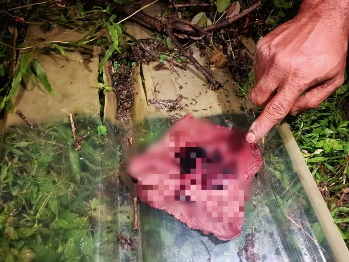 Keesokan harinya jelang magrib, Sahril ditemani salah satu warga langsung memeriksa area yang dicurigainya dan menemukan tanah menumpuk. Keduanya langsung menggali dan menemukan sesuatu yang dibungkus dengan kain penuh darah. Keduanya langsung melapor ke Polres Kepsul untuk diselidiki.