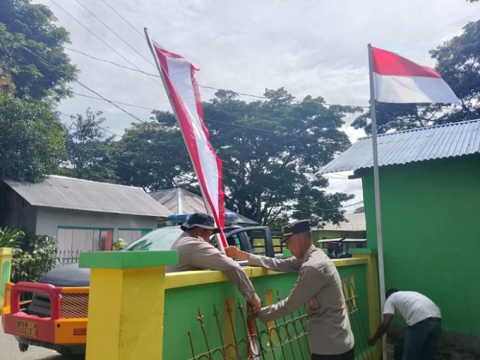 Jelang Hari Kemerdekaan, Polres Kepulauan Sula Pasang Bendera Merah Putih di Rumah Ismail Digoel